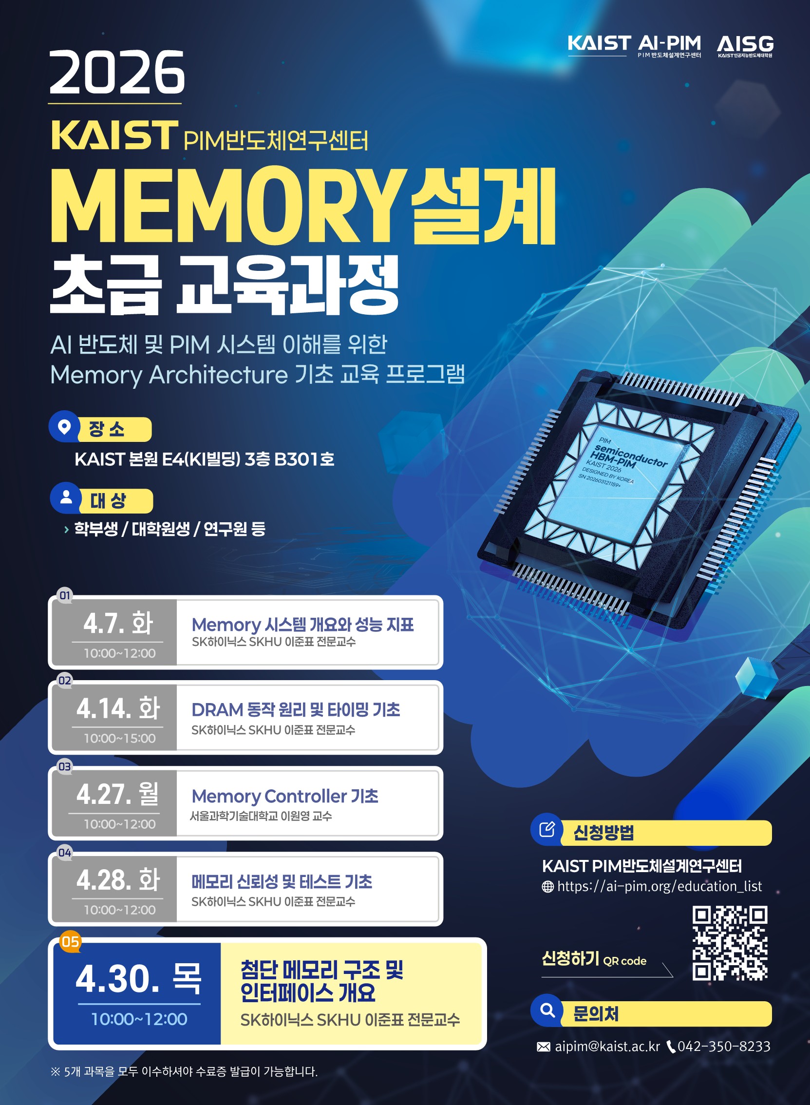 - 4/28 (화) 메모리 신뢰성 및 테스트 기초 -> 수강신청 바로가기