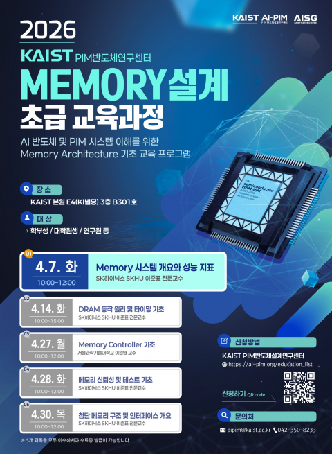 - 4/30 (목) 첨단 메모리 구조 및 인터페이스 개요 -> 수강신청 바로가기