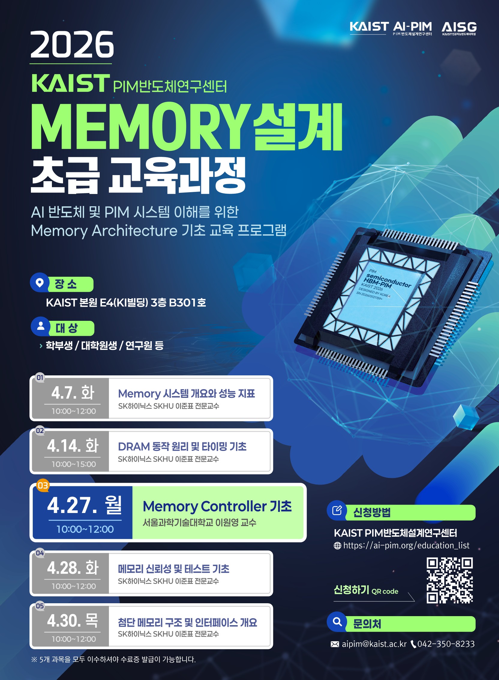 - 4/28 (화) 메모리 신뢰성 및 테스트 기초 -> 수강신청 바로가기