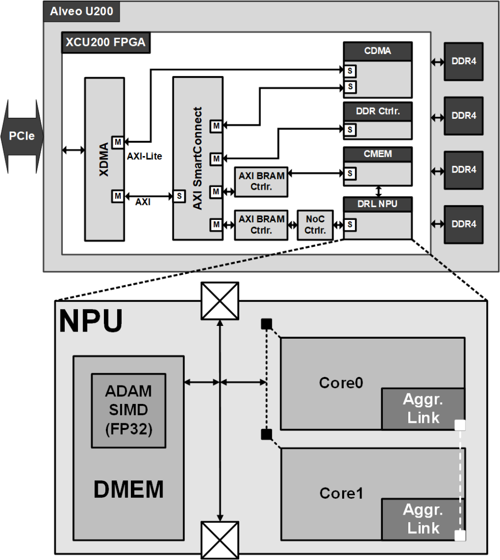 IP 검색 에너지 효율적 심층강화학습 가속기 IP (차세대지능형반도체사업단) ■ 심층강화학습에 필요한 행렬곱 연산을 추론, 오차 역전파 및 가중치 업데이트를 에너지 효율적으로 가속하기위한 유닛 (IP) ■ NPU – (Core - PE Array – PE), (DMEM – L2 Cache, ADAM Logic Unit) Feature · ■ Matrix Multiplication 기능 지원· ■ Training 기능 지원· ■ ReLU, Tanh Activation Function 지원· ■ Transpose 기능 지원· ■ Adam Optimizer 지원· ■ High Bandwidth를 위한 2D Network on Chip 지원 Application · - Business Area - Category Processor Solutions Processor Solutions > AI Processor Tech Specs IP Name : 에너지 효율적 심층강화학습 가속기 IP (차세대지능형반도체사업단) Provider : Korea Advanced Institute of Science and Technology Foundry : N/A Technology : N/A Deliverables · ■ .bit, .C Validation Status · ■ Full Simulation Availability Available Functional Diagram Benefits · Datasheet List Contact Provider 즐겨찾기 등록