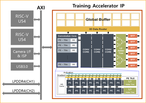 • 초병렬처리 기반(4TOPs @500Mhz) 2.1TOPs/W 전력효율
