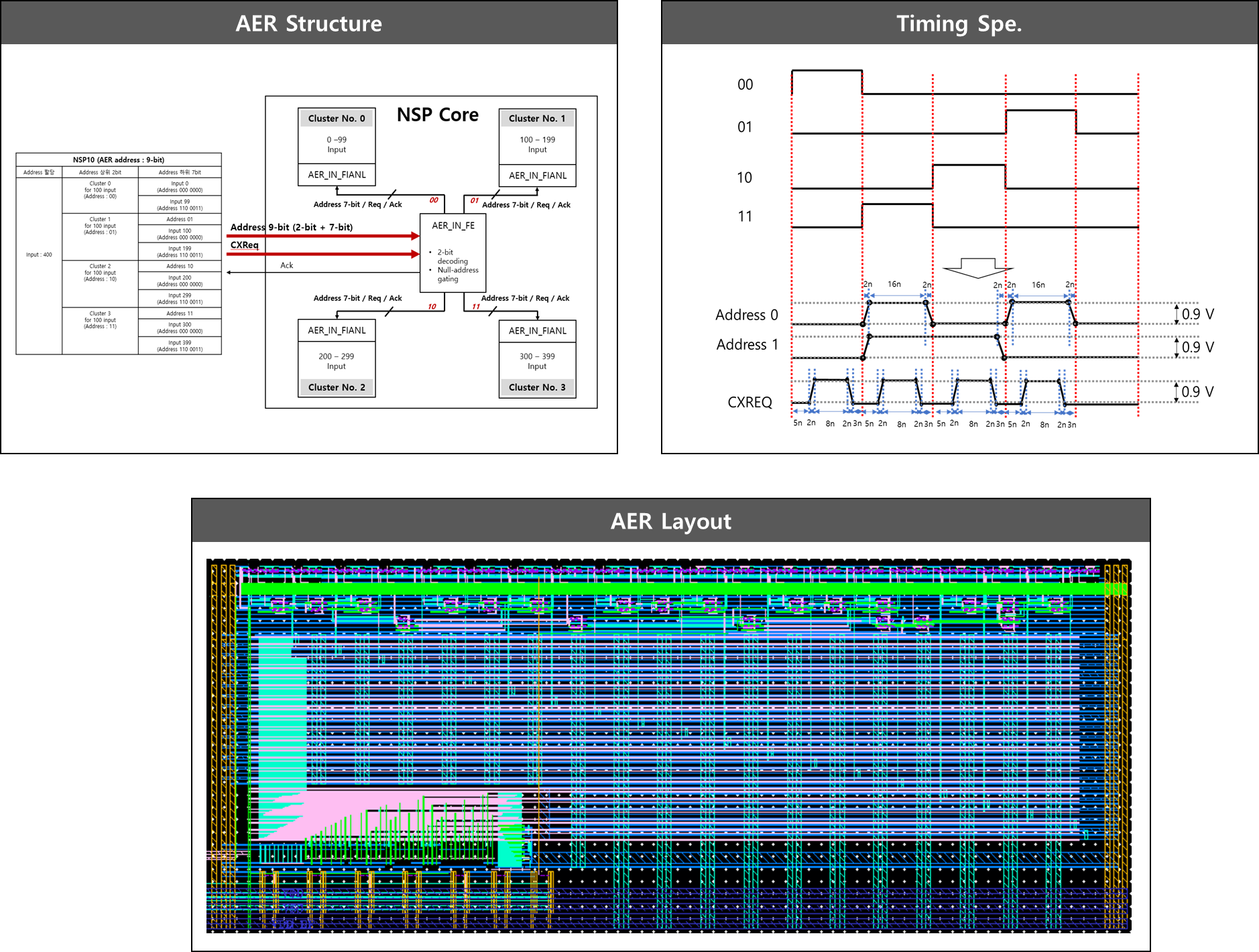 - Neural block addr. : 2-bit / Neural input spike addr. : 7-bit